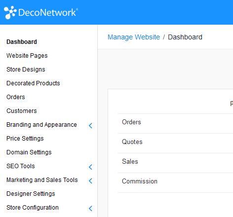 This concept is consistent in all areas of DecoNetwork - you can only view and see options or sections that are relevant to your login and the plan to which you subscribe. Not all options will ever be available to you if you are on a Standard plan, or you if you have the Premium or Enterprise plans but log in as an affiliate.