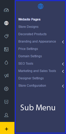The Main Menu gives you access to the main areas within the DecoNetwork Admin area. When first arriving at the Admin page you will have the Dashboard loaded with an overview of system performance. Other menu items have subsections which expand when clicked. Once you have moved away from the Dashboard the Main Menu will change to a compacted mode which reduces the main navigation items to icons and the submenu section is revealed. The main menu generally controls configuration items that affect all stores controlled by the Fulfilment Center.