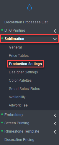 - Select Sublimation, then click Production Settings.