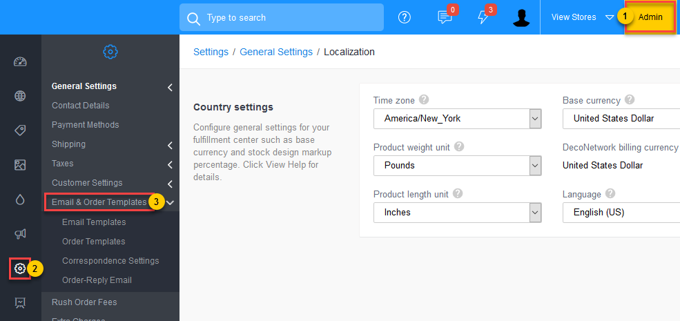 - Click Email and Order Templates.