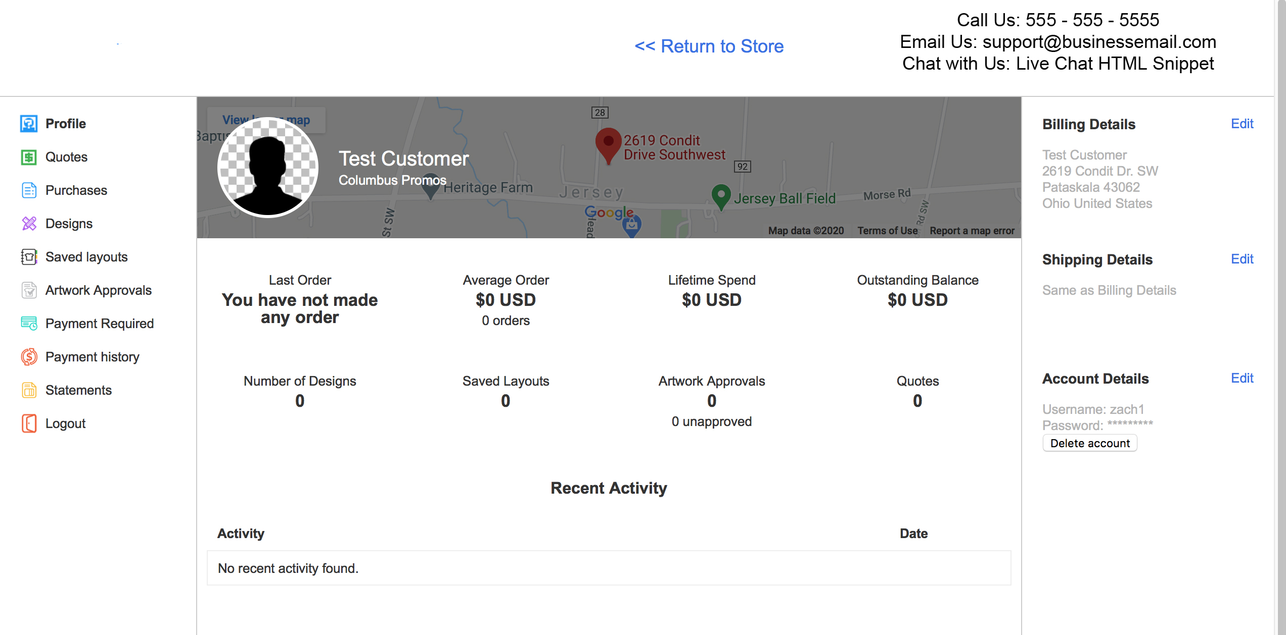 Display Website Contact Information Within Customer Account within Website